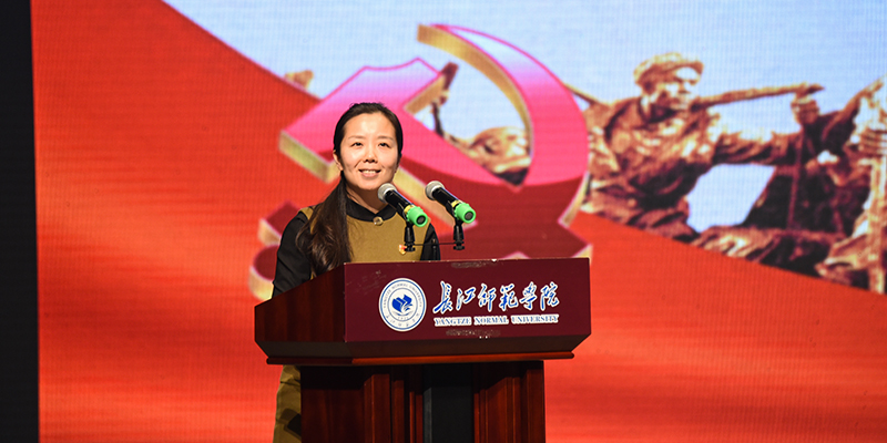 文学院李金荣教授用心用情地讲述了革命烈士江竹筠的事迹,江姐被捕后受尽严刑拷打,始终坚贞不屈,抱着为党为国为民的坚定信念,保护了党组织的安全。“一死有何难,到处是青山,为党能舍己,热血换新天。”听着江姐不畏牺牲的故事,现场观众无不深受震撼。