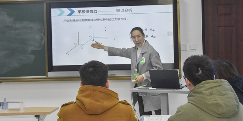 理工科中年组的比赛中,我校葛泽玲老师以《非惯性系中的动力学——力学》为题讲授。她在课堂上充分利用网络平台,以多视角的教学方法使学生充分学习知识,以做实验的形式来引导学生巩固知识点。