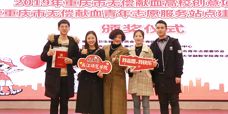 12月19日,由重庆市志愿服务工作指导中心、重庆市血液中心联合主办的2019年重庆市无偿献血高校创意项目大赛暨重庆市无偿献血青年志愿服务站点建设项目大赛决赛圆满落幕。经过层层考核选拔,我校青年志愿者服务团申报的“生命同舟长师行,无偿献血进高校”项目荣获大赛二等奖。