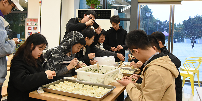 南苑“快乐食间”学生食堂,材料科学与工程学院以班级为单位开展了特色班会,班委组织同学们一起包饺子,共同在学校庆祝元旦,充满欢声笑语。