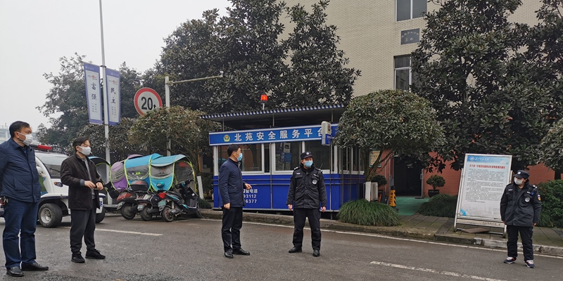 在学校北门门卫岗和安全管理处,蔡校长询问了校门进出管理情况,并观看了学校视频监控中心。他向坚守岗位的安保人员致以亲切问候,感谢他们任劳任怨、尽忠职守保护校园安全,为防疫期间学校的稳定做出了贡献。
