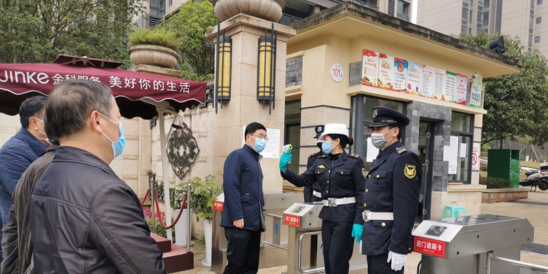 在学校聚仕兰庭小区,蔡家林校长与小区物业管理人员亲切交谈,仔细询问了小区人员与车辆进出、门岗管理、物资保障、防疫知识宣传等制度落实情况。蔡校长指出,要加强对小区业主的宣传引导,广泛地科普新冠肺炎防疫知识,对不听劝阻的人员要加大劝导力度;要加强监管力度,规范小区管理,做好对小区的消毒防疫工作,对居家隔离的人员要监管好活动轨迹;要强化服务,小区入住教职工较多,需求不一,要尽可能地提供个性化服务,保障教职工的居住安全与生活品质。蔡校长也关切地提醒工作人员,要加强自身防范,保证身体健康安全。