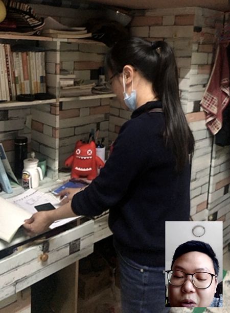 曾秀红与学生远程视频,帮学生翻找资料并邮寄