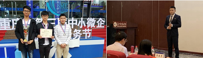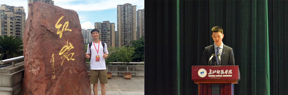左图为陈果大二校外参加比赛,右图为陈果大三上台发言