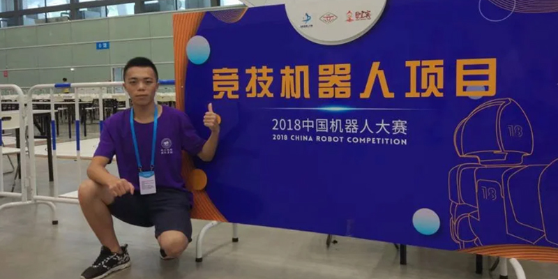 2018 年 4 月,申雪峰和队友设计的机器人“长师舞蹈 S”在“2018 中国工程机器人大赛暨国际公开赛”中荣获一等奖。回首比赛过程,申雪峰感慨道:“机器人程序调试是一个枯燥与反复的过程,工序操作需要非常细致,动作与音乐指令的契合让人绞尽脑汁,反复的程序对比和偏差记录让人头昏眼花,每一步调试都要求精准无误。”没有经验借鉴,面对一个个技术难题,申雪峰和团队成员们咬牙坚持,与指导老师一道优化程序,通宵达旦验证比对实验数据,凭借信念、坚守与勤奋,他们最终获得“2018 中国工程机器人大赛暨国际公开赛”机器人舞蹈项目一等奖。