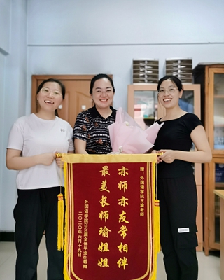 离校之际,外国语学院2020届毕业生代表为辅导员王瑜老师赠送锦旗,以此表达对老师的感恩与祝福,感谢四年来的陪伴与呵护。毕业生们纷纷赞到,王老师爱岗敬业、爱生如子的形象不仅深入人心,也是长师每一位优秀教师的缩影。