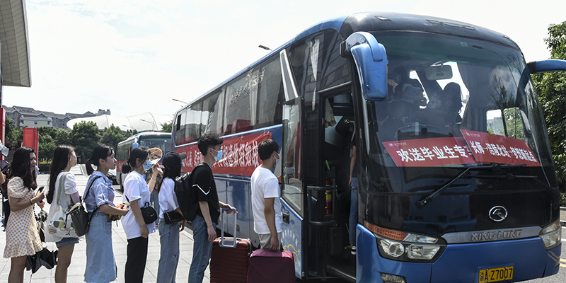 学生工作处开展“梦想新起点 欢送毕业行”毕业生离校送站专车活动,在拏云学生活动中心大门前设置了毕业生离校乘车点,为学生的“最后一公里”保驾护航。同时在毕业生宿舍区设置多个行李托运点,为毕业生行李寄送提供便捷和高效的服务。