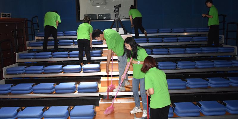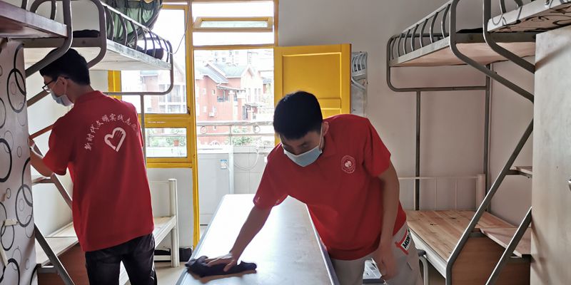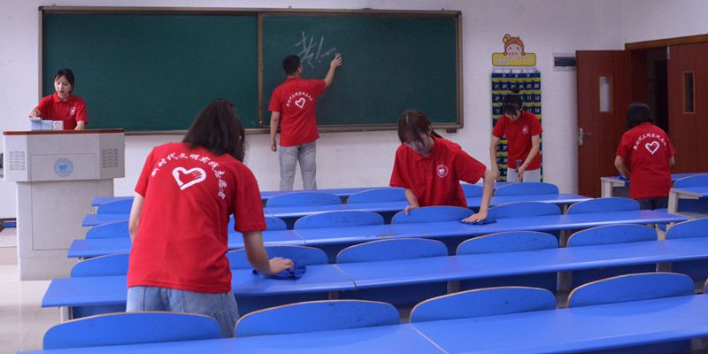 化学化工学院学生预备党员、入党积极分子在新生宿舍、卫生责任公区和实验室开展卫生清扫活动,该院教师队伍也主动参与到本次活动,全院师生共同为新生的到来营造良好环境。