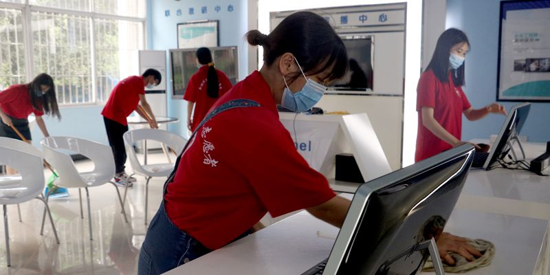 教师教育学院志愿者们对智能实训室进行了清洁打扫。