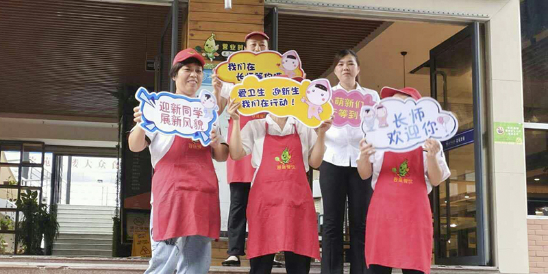 后勤管理处对食堂提前进行了清扫消毒、食品安全检查,调整了供餐窗口,开通了线上点餐。工作人员在食堂举着迎新标志,并教新生们如何使用校园码付款与充值、如何运用APP订餐。安全管理处在迎新期间全员出动,提前布置交通路线、维持现场秩序,保障了迎新期间的安全稳定工作。