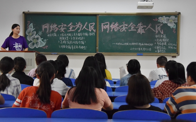 各二级学院召开了以“网络安全为人民、网络安全靠人民”为主题的班团会,普及电脑上网安全、手机上网安全、网络购物安全防范、常见网络诈骗手法及防范、日常网络陷阱防范防骗知识,将网络安全知识宣讲到每个班级、每名同学。