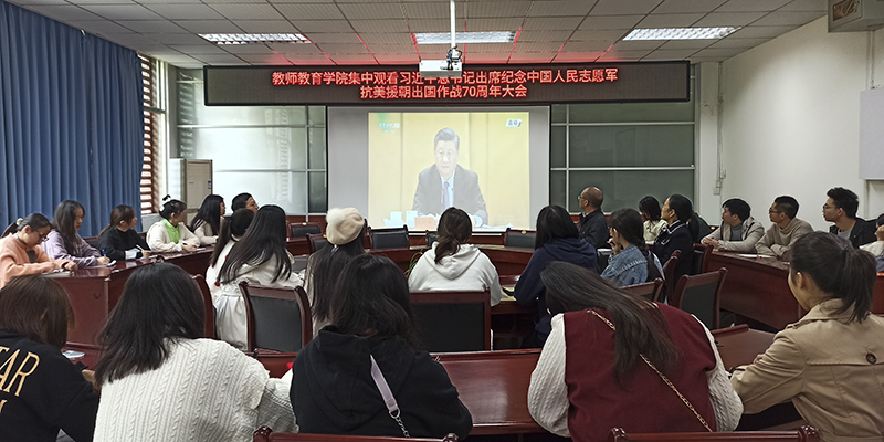 70年前,中国人民志愿军发扬伟大的爱国主义精神和革命英雄主义精神,跨过鸭绿江,历经两年零9个月的浴血奋战,赢得了抗美援朝战争的伟大胜利。而今,我们必须铭记习近平总书记的重要讲话精神,更加紧密地团结在以习近平同志为核心的党中央周围,铭记抗美援朝战争的伟大胜利,推进社会主义建设伟大事业,向着全面建设社会主义现代化国家新征程,向着实现中华民族伟大复兴的中国梦,继续奋勇前进!作为学校宣传思想文化战线的一员,我们要继续发扬伟大的抗美援朝精神,讲好长师故事,立志为人民的教育事业和学校的发展建设做出更大贡献。