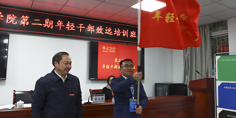 第二期年轻干部致远培训班是我校进一步强化年轻干部理想信念,提高思想政治素质,提升行政管理能力的重要举措。在12月16日的开班仪式上,黄大勇书记为班级授旗并致辞。黄书记寄语全体年轻干部要在思想的淬炼、政治的历练、实践的锻炼、专业的训练下,明确责任担当,提高综合素养,形成一支高素质、专业化的年轻干部团队,为建设应用型高水平师范大学打下坚实的基础。