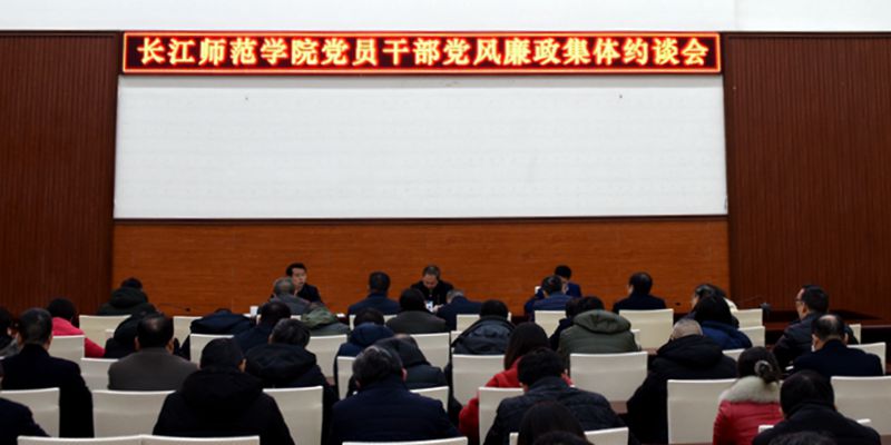 12月30日上午,我校在致远楼会议中心召开党员干部党风廉政集体约谈会。党委书记黄大勇出席会议并讲话,党委副书记、校长蔡家林主持会议,党委常委、纪委书记、监察专员赵骏对党员干部开展集体约谈,全体校领导,党委常委、党委委员,纪委委员,副处及以上干部,各二级党组织纪检委员参加会议并接受廉政约谈。