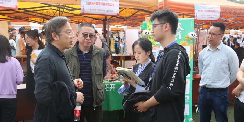 副校长杨双到双选会现场了解招聘情况,与部分单位负责人进行了交谈,了解岗位信息与应聘情况,并亲切询问了毕业生的求职意向和面试情况。杨双副校长勉励毕业生们要有正确的就业观与就业态度,客观分析当前的就业形势,对自身综合情况进行评估后再择业。