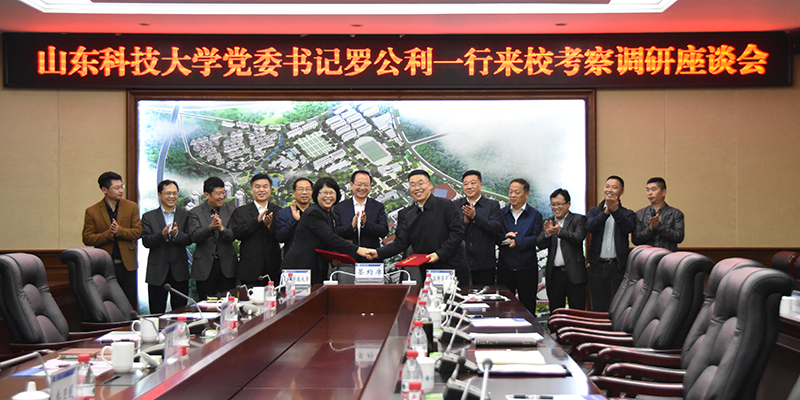 4月24日上午,山东科技大学党委书记罗公利一行来我校考察调研并召开专题座谈会。我校党委书记黄大勇,校长蔡家林,副校长袁革、米永生,相关职能部门、二级学院负责人出席座谈会。会上,两校签订合作协议,与会人员就合作的具体内容进行了深入交流。