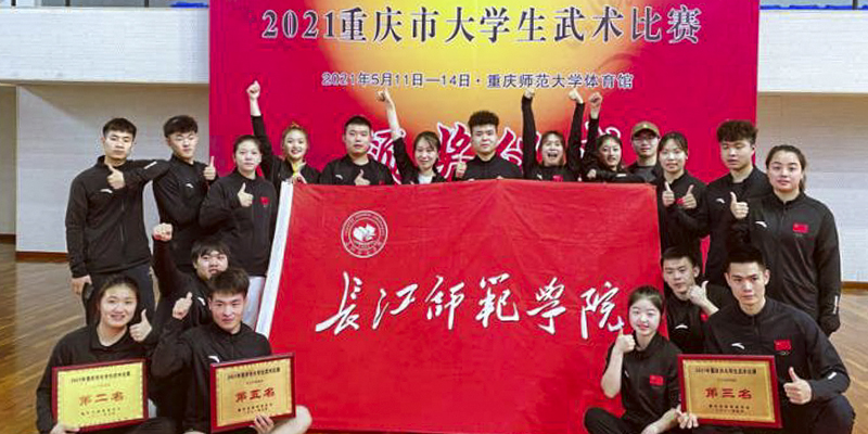 日前,由重庆市教委主办的“2021年重庆市大学生武术比赛”在重庆师范大学举办。本次比赛吸引了全市27所高校、305名运动员参赛,我校武术队共派出18名运动员参加了男子丙组、女子丙组、男子甲组三个组别的比赛。经过激烈角逐,我校代表队荣获女子丙组亚军、男子丙组季军、男子甲组第五名,单项获得金牌4枚、银牌6枚、铜牌6枚。这也是我校武术队单项获得奖牌总数历年之最。