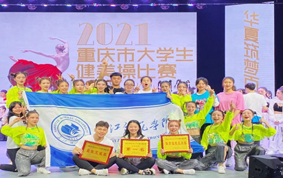 日前,由市教委主办的2021年重庆市大学生健美操比赛在四川外国语大学举办,全市共有32所高校参赛。我校派出了健美操、啦啦操、排舞三个比赛团队,经过激烈角逐,我校代表队荣获丙组男子单人竞技健美操第一名,丙组女子单人竞技健美操第二名,丙组三人竞技健美操第一名。团体竞赛荣获健美操比赛丙组团体第一名、丙组花球团体啦啦操第二名,丙组排舞团体第六名,以及 “2021年重庆市大学生健美操比赛最佳完成奖”“2021年重庆市大学生健美操比赛体育道德风尚奖”。