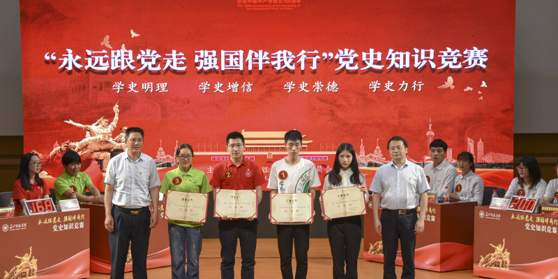 6月5日,我校“永远跟党走 强国伴我行”党史知识竞赛隆重开赛。比赛设置了理论测试、“星火挑战”“砥砺前行”“峥嵘岁月”和“日新月异”多个环节,现场气氛热烈,掌声、喝彩声此起彼伏,参赛师生、现场观众接受了一次印象深刻的党史学习教育。