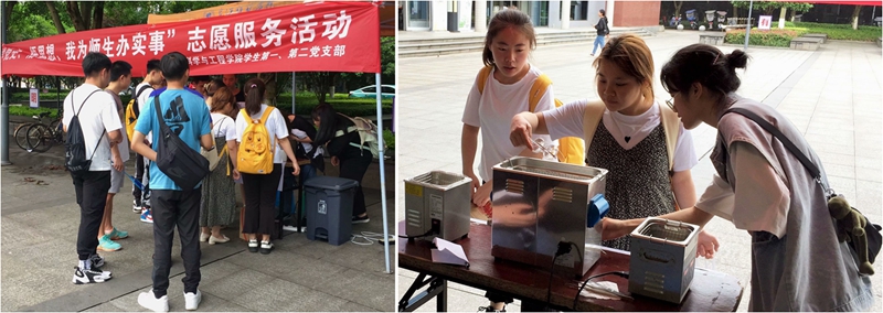 材料科学与工程学院党总支的学生党员为同学们清洗眼镜