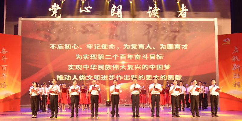7月2日下午,拏云学生活动中心庄严隆重、气氛热烈,学校举行庆祝中国共产党成立100周年大会暨“党心朗读者”主题党日活动。党委书记黄大勇讲授主题党课,师生党员代表身着正装、佩戴党徽一同接受党性教育、重温入党誓词,献礼伟大的中国共产党百年华诞。