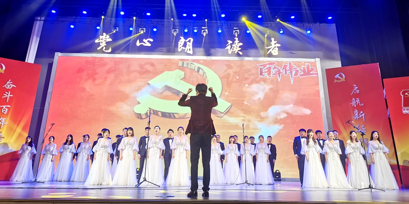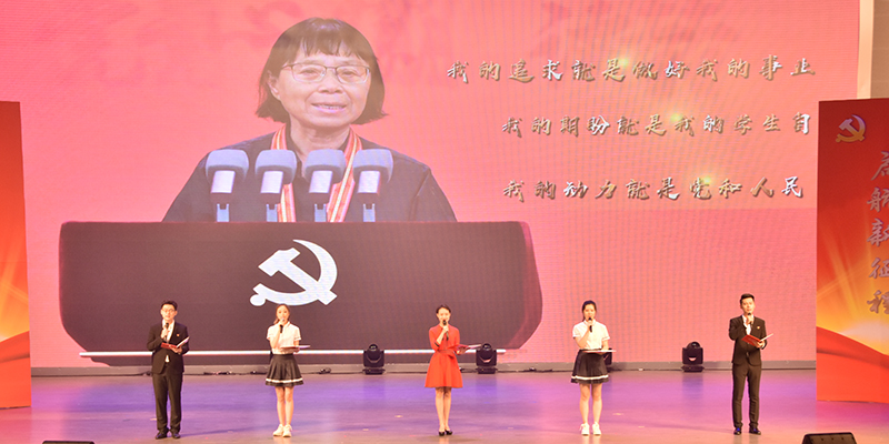 音乐学院师生深情演唱《唱支山歌给党听》;“两优一先”获得者代表朗读《共产党宣言》(节选),让在场师生感受到共产党员追求理想信念的铿锵跫音。