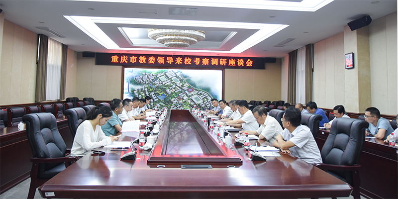 市教委秘书处副处长郭冠仁、高教处副处长魏巍、基教处干部,涪陵区教委主任孙应勇,我校相关职能部门、二级学院负责人参加调研与座谈会。