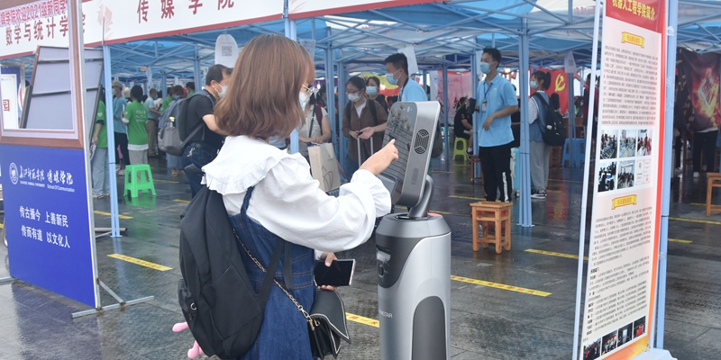 机器人工程学院推出了机器人迎新,新生可以便捷地向机器人了解入学流程、专业介绍等咨询,更直观地了解到前沿的机器人技术。