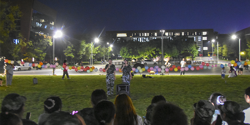 传媒学院、电子信息工程工程学院、数学与统计学院、教师教育学院等多个学院都为新生举办了中秋晚会。老师和同学们围坐在操场上,打开手机电筒当作“荧光棒”,大家热情地上场表演才艺,现场欢呼声此起彼伏,拉近了师生们的距离,温馨的气氛让夜晚的校园更加动人。