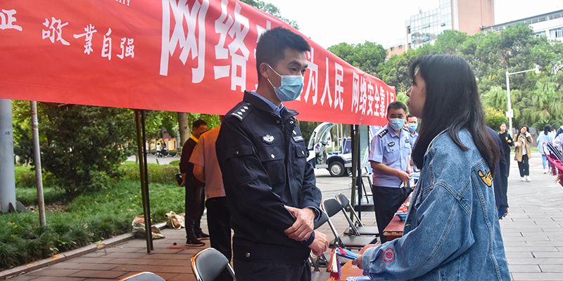 10月12日,学校在天一广场举办了网络安全“校园日”主题活动,邀请了涪陵区公安局网安支队来校现场讲解宣传,向广大学子发放了网络安全折页、书签2300余份,同学们向网安支队警官们请教日常遇到的网络安全问题,并认真观看学习宣传展板和LED屏播放的专题视频。