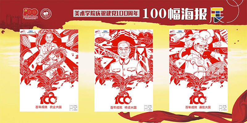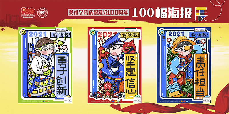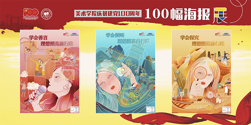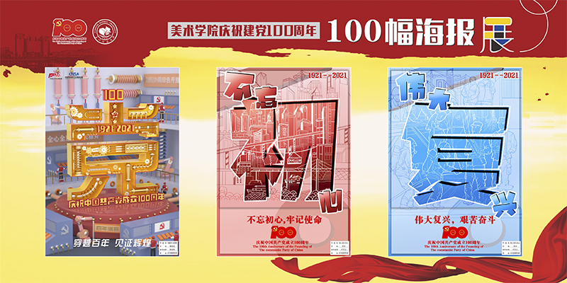 日前,美术学院举办了“庆祝中国共产党成立100周年百幅海报作品展”。作品展以“传承红色文化、弘扬革命精神”为主题,美院学子用色彩明快、视觉强烈的海报作品再现中国共产党波澜壮阔的百年发展历程,巩固党史学习教育成果,激励广大师生坚定理想信念、增强使命担当。