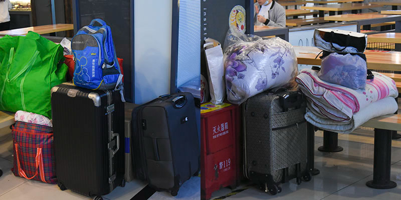 为了保障全校师生的饮食供应,食堂工作人员将衣物、被子搬到了学校