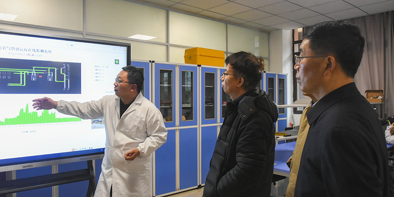 在机器人工程学院北交大研究中心,赵鹏一行参观了我校在轨道交通数字化平台、新型高功率密度SiC变流器研发、高速铁路弓网受流技术研究、变压器光纤传感智能测温系统研发等方面的研究成果,并实地考察了光感技术实验室、AI赋能研究室、页岩气智能感知技术实验室、等离子材料医学实验室、现代测试技术实验室、固废资源化技术实验室多功能粉体实验室等。