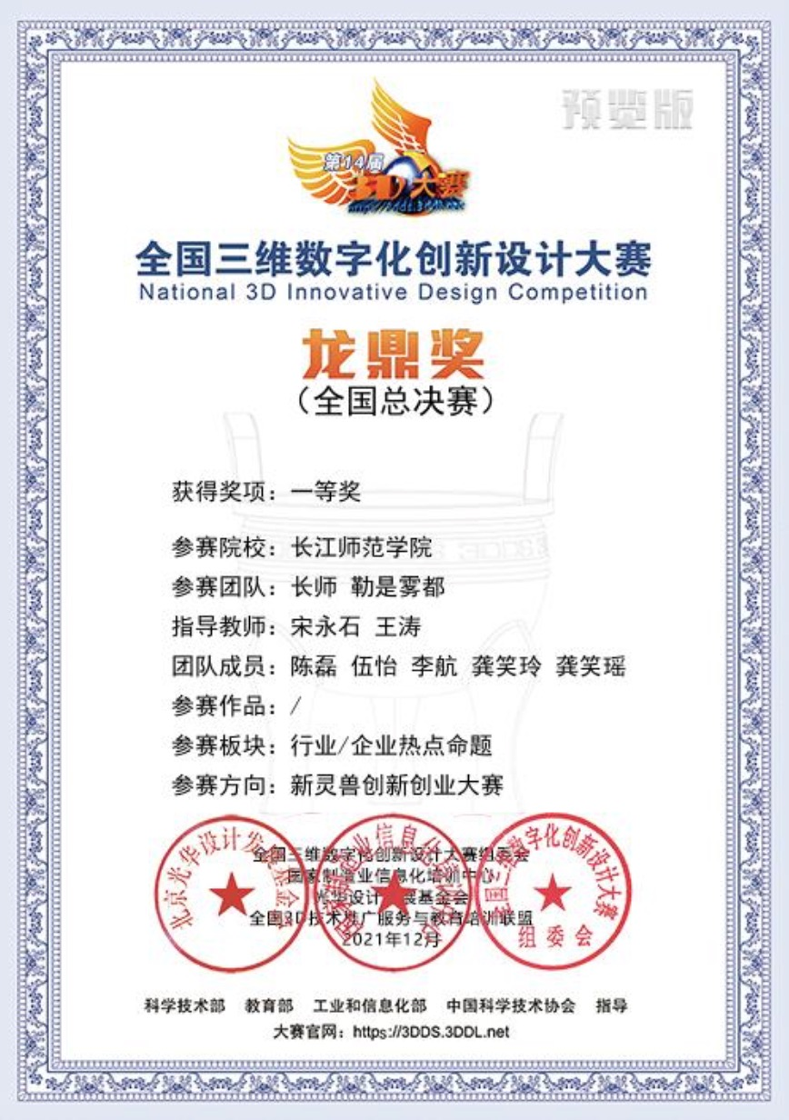 近日,第14届全国三维数字化创新设计大赛总决赛在线上成功举办。我校共有13支代表队入围,经过多个环节的角逐,我校共荣获一等奖1项、二等奖5项、三等奖7项。