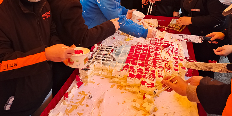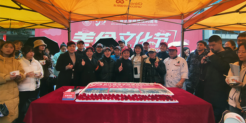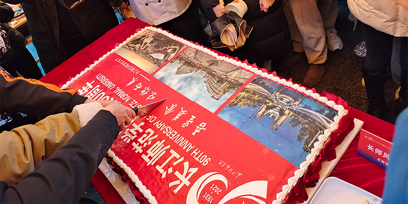 主办单位更准备了一个长1.2米、宽0.8米的蛋糕,上面写着“长江师范学院建校90周年”的字样。食堂工作人员一一分给师生们品尝,大家在品尝蛋糕的快乐氛围中,共祝长师生日快乐,共同感受建校90周年的隆重时刻,共享学校建设发展的骄傲自豪。