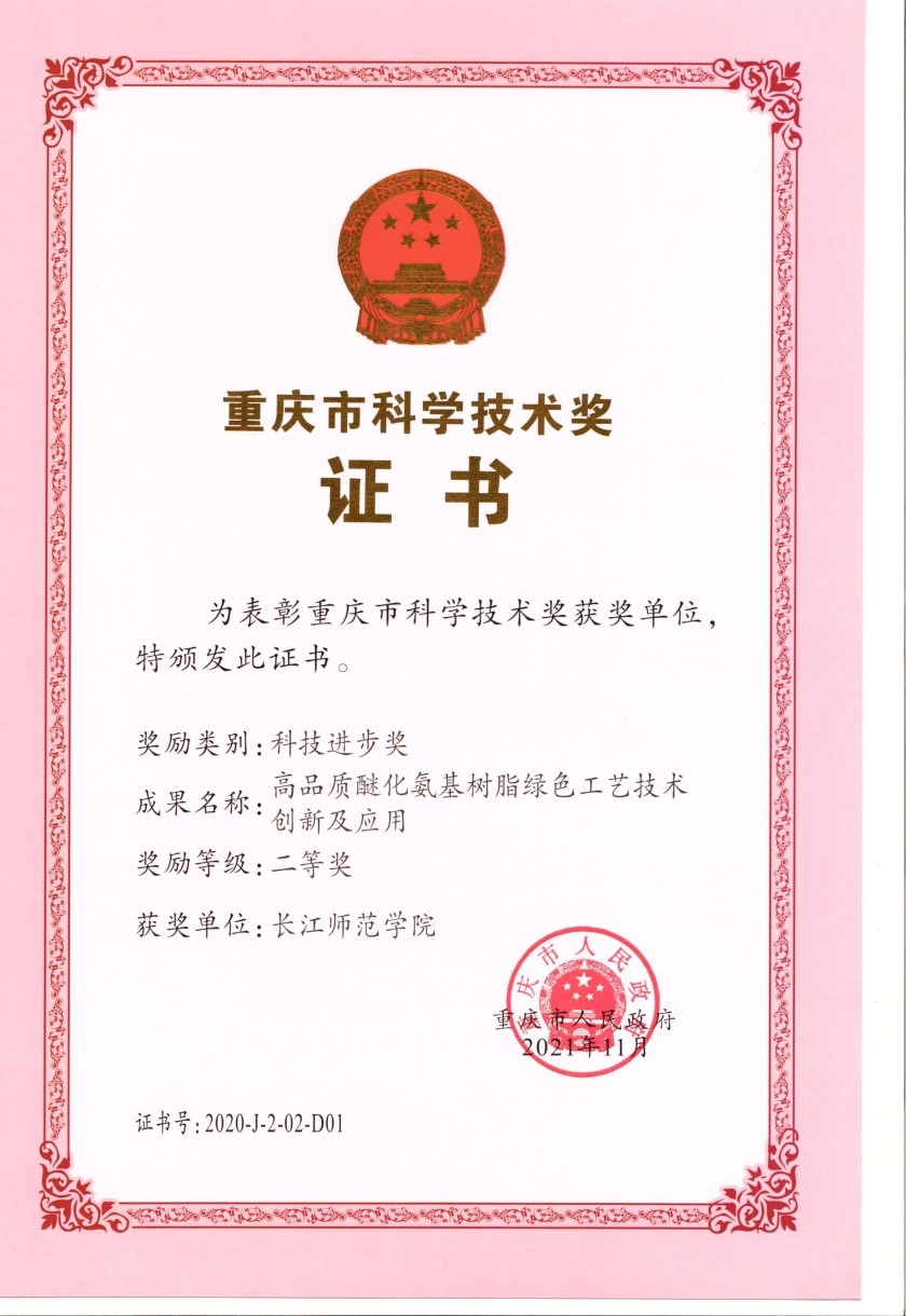 日前,重庆市科学技术奖励大会在渝州宾馆隆重召开,2020年度重庆市科学技术奖正式揭晓。我校作为第一完成单位,符靓、石文兵、黄辉胜等为核心研发成员的“高品质醚化氨基树脂绿色工艺技术创新及应用”产学研合作项目,荣获科技进步二等奖。该项目已在重庆建峰浩康化工有限公司成功应用,产生了显著的社会经济效益。
