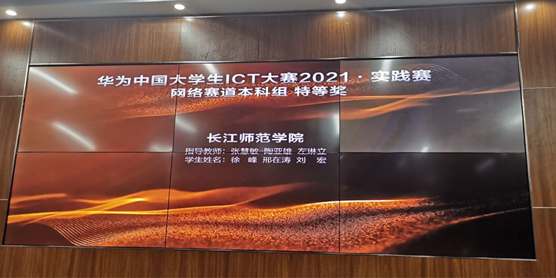 近日,我校电子信息工程学院通信工程专业学生徐峰、邢在涛、刘宏组成的团队荣获“华为中国大学生ICT大赛2021”实践赛全国总决赛本科组网络赛道特等奖(第一名),并获得参加2022年5月在深圳举办的全球总决赛资格。