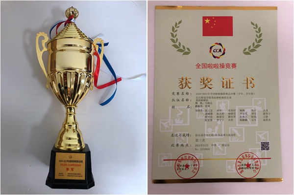 日前,由国家体育总局体操运动管理中心、中国蹦床与技巧协会主办的“2021-2022年全国啦啦操联赛总决赛”成功举办,全国共有247支队伍参加总决赛。我校健美操队以重庆赛区花球项目第一名的成绩参加了总决赛,并荣获全国啦啦操联赛总决赛大学青年乙组(专业组)集体花球自选动作第三名的好成绩。
