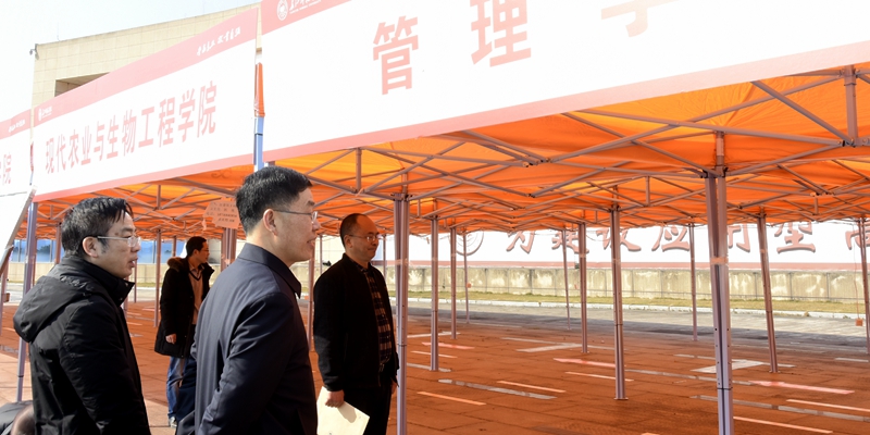 2月24日下午,校领导黄大勇、蔡家林、袁革、杨双、赵骏分别率队检查开学工作,深入各二级学院、实验实训中心、南门集中报到点、学生社区、食堂、教育超市等重点区域,检查教学、管理、服务一线开学准备情况。