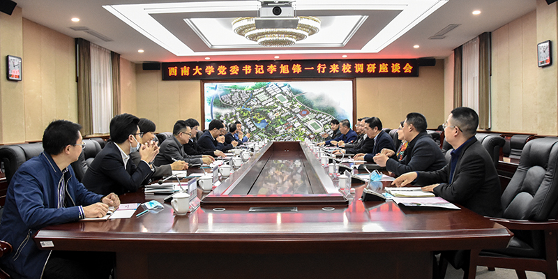 3月29日上午,西南大学党委书记李旭锋一行到我校调研,调研座谈会在致远楼525会议室召开。西南大学副校长赵国华,我校党委书记黄大勇、副校长向小川、纪委书记赵骏,两校党政办公室、组织部、人事处、发展规划处、科研处等职能部门负责人参加座谈会。向小川主持会议。