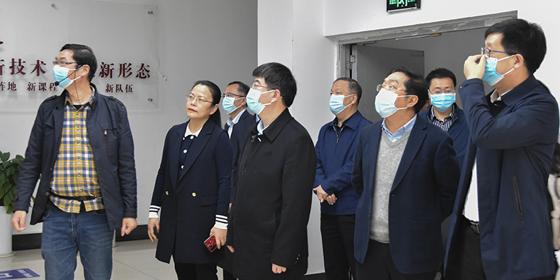 李旭锋一行走访调研了学校教师教育学院的形体与礼仪综合训练室、智能化粉笔训练与测试室、书写技能训练室、智能教学训练室、小学音乐教育实训室等,并高度评价了我校师范教育的师资力量、教学设备、科研平台、培养体系。