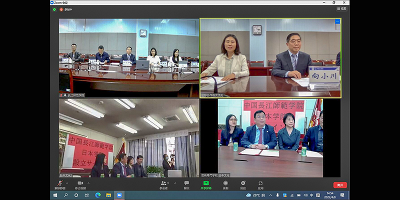 4月8日下午,我校与日本日中文化艺术学院相聚云端,举行合作办学线上签约仪式,双方签署了合作办学意向书。日本日中文化艺术学院理事长张永胜,副校长罗晶、爱甲芳华、森本豪,我校副校长向小川,文学院、国际合作与交流处、国际学院负责人出席签约仪式。