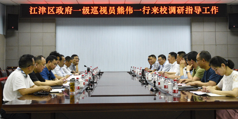 6月13日下午,江津区政府一级巡视员熊伟一行到我校调研,校地双方在致远楼323会议室召开座谈会。学校校长蔡家林、副校长袁革参加座谈会。蔡家林主持会议。