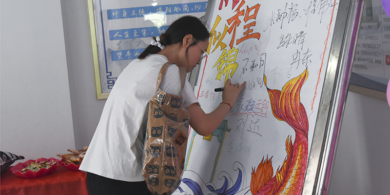 在政治与历史学院,毕业生们与老师纷纷在毕业展板上签字留念,师长们写下对毕业生们的祝福,表达了希望毕业生们担当时代重任、勇于砥砺奋斗的嘱托;毕业生们则纷纷留下对母校、老师、同窗的不舍之情。