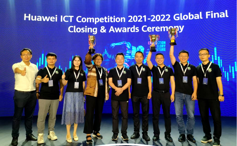 6月 25日,华为ICT大赛2021-2022全球总决赛在深圳华为总部圆满收官。来自全球逾82个国家和地区、2000多所院校、15万学生同台竞技,经过国家赛、区域赛和全球赛的激烈比拼,我校电子信息工程学院代表队荣获实践赛网络赛道特等奖。