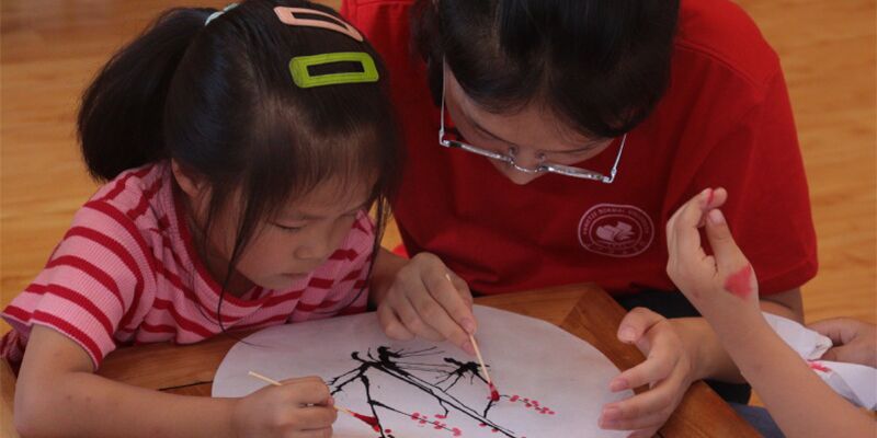 实践团的志愿者们也把专业知识运用起来,开设了“书画小课堂”,将传统文化讲授给中益乡的留守儿童们。在志愿者的带领下,小朋友们轻声念着笔顺口诀“横平、竖直、撇捺舒展”,手握毛笔在宣纸上认认真真地写下方块字。志愿者们别出心裁地教小朋友们学习“吹”梅花画:先在纸的下方滴几滴墨汁,然后用力吹出枝干,最后以几滴红墨水点缀,一朵朵高洁的红梅在纸上绽放,散发出浓厚的墨香。有趣的作画方式,吸引小朋友们跃跃欲试,一个个鼓着小嘴巴,十分卖力地“吹梅花”,用心感悟 “梅花香自苦寒来,宝剑锋从磨砺出”的意义。