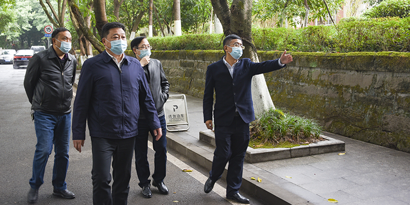 11月16日上午,学校副校长袁革、李柳柏率队检查疫情防控工作。学生工作处、安全管理处、基建后勤处、国有资产管理处等职能部门负责人陪同检查。