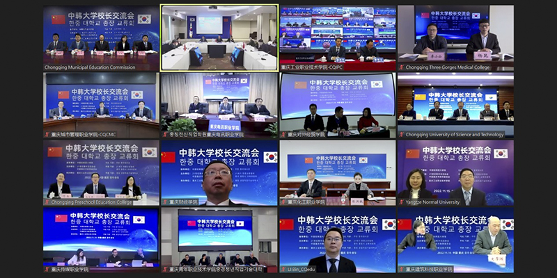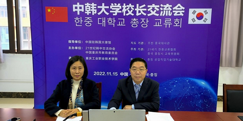 1115日上午,在中国驻韩国大使馆的大力支持下,由重庆市教育委员会、韩国21世纪韩中交流协会共同主办的“中韩大学校长交流会”在重庆和首尔两地以线上线下相结合的方式举办。中国驻韩国大使邢海明,公使衔参赞艾宏歌,韩国21世纪韩中交流协会会长金汉圭,市委教育工委书记、市教委主任黄政出席大会并致辞。13所重庆高校、5所韩国高校的负责人相聚“云端”,共商中韩高等教育国际合作。我校副校长向小川在会上作主题交流发言。