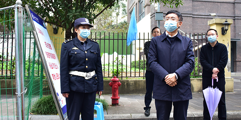 李柳柏一行先后前往学校集贤雅舍门岗、鉴湖环道、聚仕兰庭物业服务中心、南苑食府、学校南门与东门围栏、快递服务中心等重点区域进行检查。在听取了当前疫情防控工作情况汇报后,李柳柏对外来车辆进出、教职工进出、物资采买、食品安全、门岗管理服务等提出明确要求,并结合实际情况再部署、再落实,确保校园疫情防控工作平稳进行。