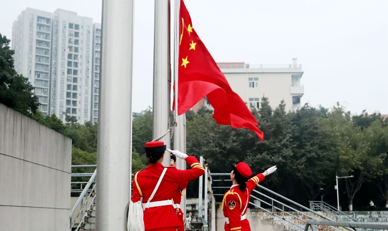 20日清晨,全体在校学生在行健体育场参加了新学期首次升旗仪式。7时30分,女子国旗护卫队队员们迈着铿锵有力的步伐,护卫着神圣的五星红旗走向升旗台,伴随着庄严的国歌声,全体师生注目着五星红旗冉冉升起,怀揣着对祖国的无限热爱和敬意,面向国旗肃立敬礼、齐唱国歌。学生代表在国旗下的演讲中,分享了参加重庆北碚山火救援的经历。